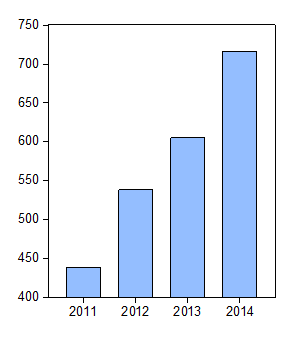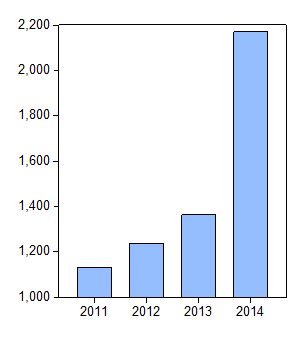 圖1:2011-2014泰州工業(yè)增加值(億元)