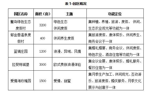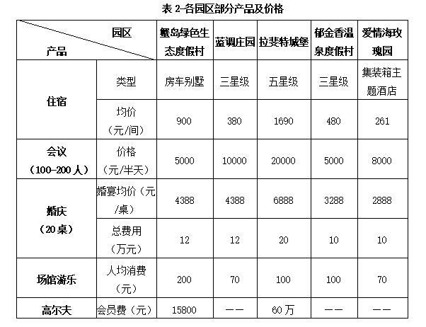 蟹島綠色生態度假村以親子、商務人士、情侶等人群為主;拉斐爾以商務精英等高端消費人群為主;藍調以親子、情侶、商務人士等為主;郁金香以商務人士、家庭為主;愛情海玫瑰園以情侶、親子為主。