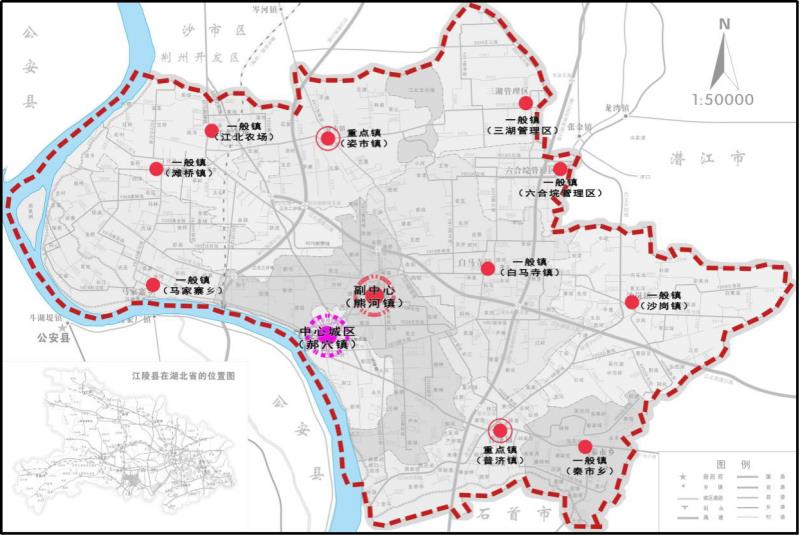 積極對接荊州市“一核五極六軸”城鎮格局,深化落實江陵向北拓展,與荊州主城區融合發展的戰略部署要求,統籌國土空間、產業布局、人口規模和環境容量,科學合理劃分生活空間、生產空間、生態空間,構建分工明確、功能互補的新型空間功能布局,明確鄉鎮等級規模結構,強化交通支出體系,優化城鎮空間格局。