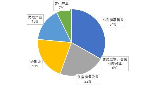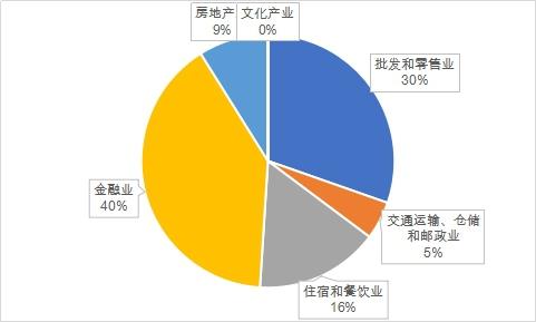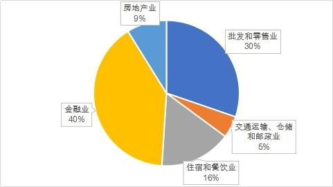 2017年天心區服務業五大支柱產業占比分別為金融業、批發和零售業、住宿和餐飲業、房地產和交通運輸業占比分別為40%、30%、16%、9%和5%。金融業占比達到40%說明現代服務業高度發達,是天心區服務業結構調整和優化的重要表現。房地產業占比僅僅為5%,說明經濟擺脫了房地產“依賴癥”。