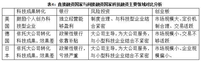 上述分析表明,直接融資國(guó)家科技金融各個(gè)領(lǐng)域的表現(xiàn)基本上都優(yōu)于間接融資國(guó)家,顯得更為成熟。