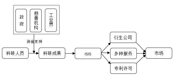 ISIS公司專門設立自然科學組和生命科學組來負責研究成果的轉化。基本活動包括:尋找具有市場潛力的大學研究成果,并對其進行市場分析和評估,獲得肯定后,公司及發明者共同制定臨時保護措施,同時由公司全額出資申請專利保護然后再以30%的比例從特許經營權中回收成本,通過各種渠道宣傳專利技術,吸引來自世界各地、涉及各個行業的公司購買其知識產權特許,進行技術開發或技術產品銷售,ISIS代表同發明者共同參與成立創新公司各個環節的工作,但不參與創新公司的運營,公司成立后,Isis完成使命并成為公司的普通股東。