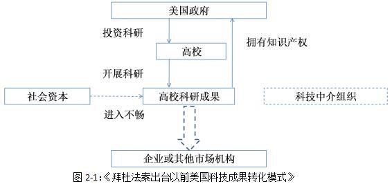 二十世紀(jì)八十年代以前,美國和其他發(fā)達(dá)國家一樣面臨著科技成果(尤其是由政府投資的高校和科研院所產(chǎn)生的科研成果)轉(zhuǎn)化率低的問題。相關(guān)數(shù)據(jù)表明:到1980年,美國聯(lián)邦政府擁有2.8萬個(gè)由政府資助而產(chǎn)生的專利,而通過專利使用許可用于生產(chǎn)的數(shù)量僅占5%。作為重要科研力量的美國高校在1980年以前每年獲得的專利從未超過250項(xiàng),從事科技成果轉(zhuǎn)化的學(xué)校則更少。