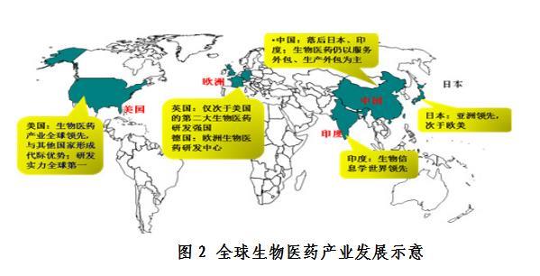 目前,全球生物醫藥產業呈現集聚發展態勢,主要集中分布在美國、歐洲、日本、印度、中國等地區。其中美、歐、日等發達國家占據主導地位。