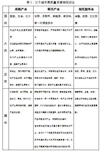 四個城市高質(zhì)量發(fā)展的起點(diǎn)不一樣,大慶從工業(yè)化中期向中后期轉(zhuǎn)變;遷安從工業(yè)化初期向中期轉(zhuǎn)變;深圳和煙臺則是從工業(yè)化后期向后工業(yè)化階段轉(zhuǎn)變。他們的主導(dǎo)產(chǎn)業(yè)和資源條件也不一樣,導(dǎo)致轉(zhuǎn)型的路徑和方向也不一樣。