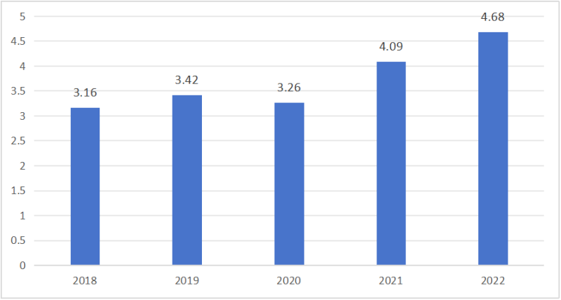 圖表3:2018-2022年江陵縣人均GDP(萬(wàn)元)變化